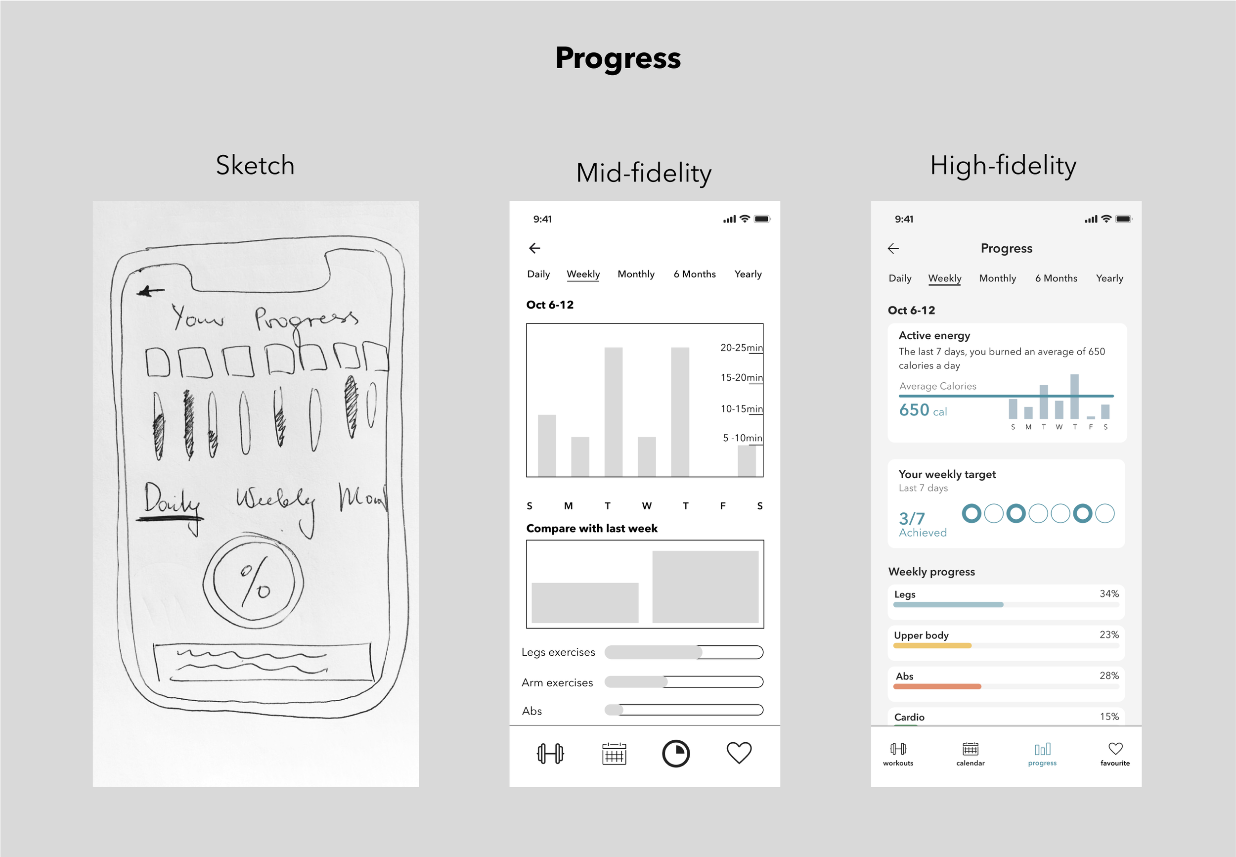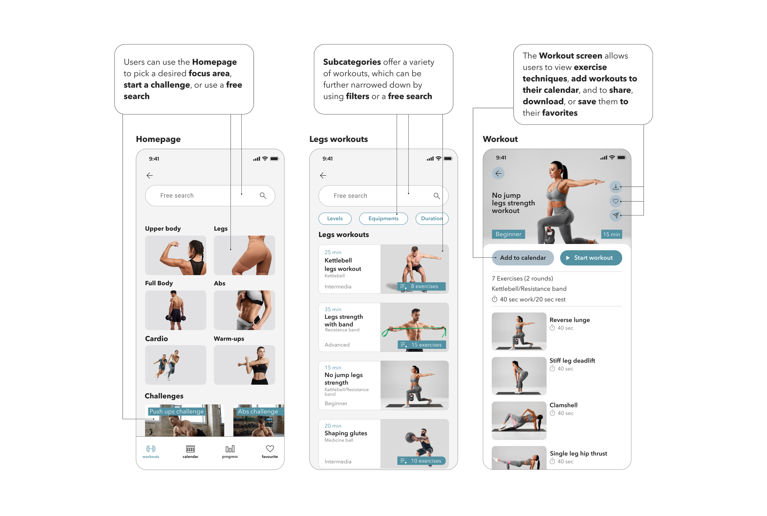 Working on this project was a lot of fun. I thoroughly enjoyed analyzing what needs, challenges, and motivations people with different fitness levels might face. As someone who has been exercising for many years and has been an active user of fitness platforms myself, I was curious to work on this project from the perspective of a UI designer.
